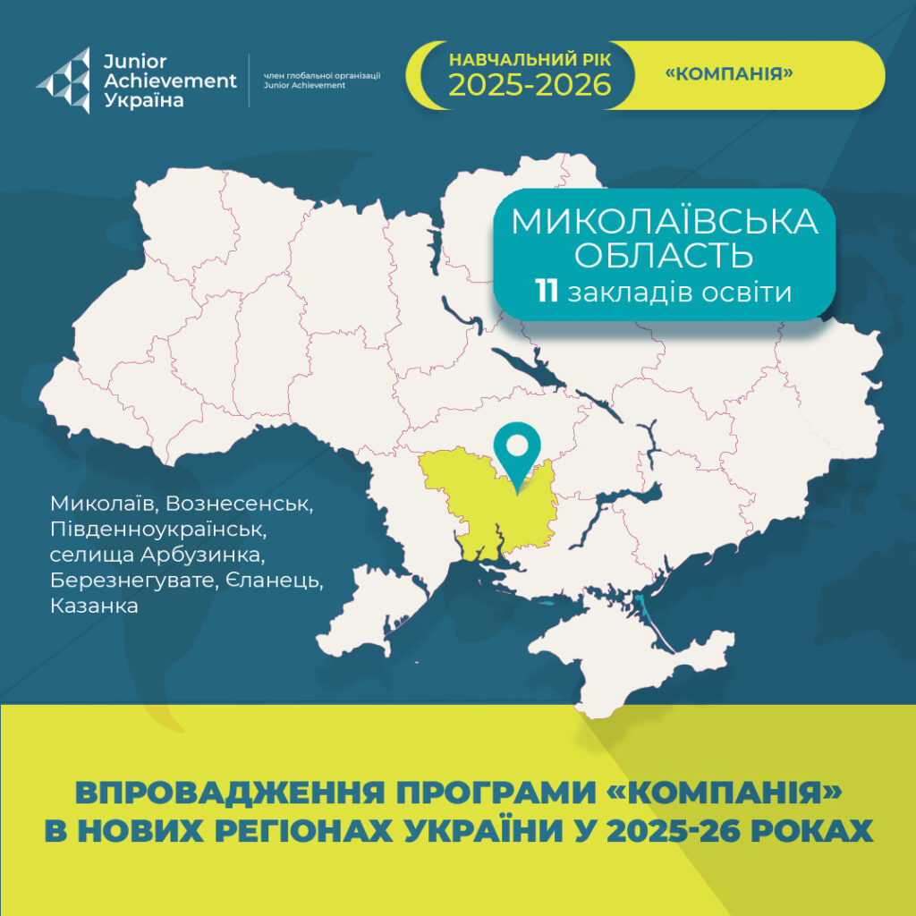 11 закладів професійної освіти області запровадять міжнародні навчальні програми Junior Achievement. У 2025-2026 навчальному році