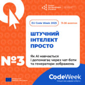 EU Code Week — це щорічна ініціатива, що об’єднує 40 країн Європи, мільйони здобувачів освіти, викладачів, батьків та ентузіастів цифрових технологій з усього світу. Її мета — популяризація навичок програмування та розвиток інтересу до технологій серед молоді.