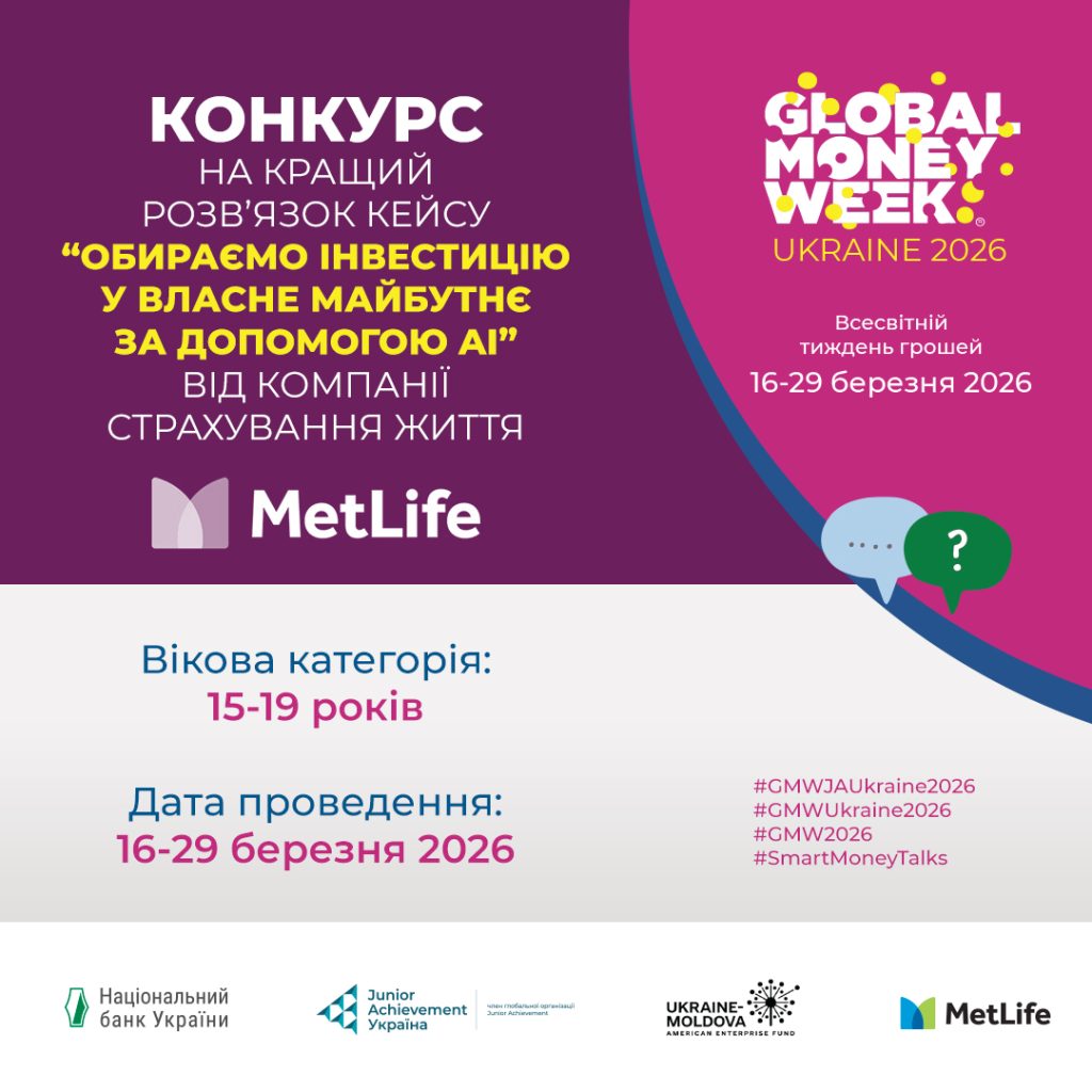 Завдання: запропонувати командою (до 5-ти осіб) розв’язок кейсу від провідної міжнародної компанії страхування життя “Metlife”. Результати роботи команди оцінять фахівці страхової компанії і оберуть найкращий варіант вирішення кейсу. Команда-переможець отримає приз від Metlife. Запропоновані командою розв’язки кейсу у довільному форматі (відео/презентація/текст) надсилати до 23:59 год 29.03.2026 року на електронну адресу: info.moneyweek@gmail.com